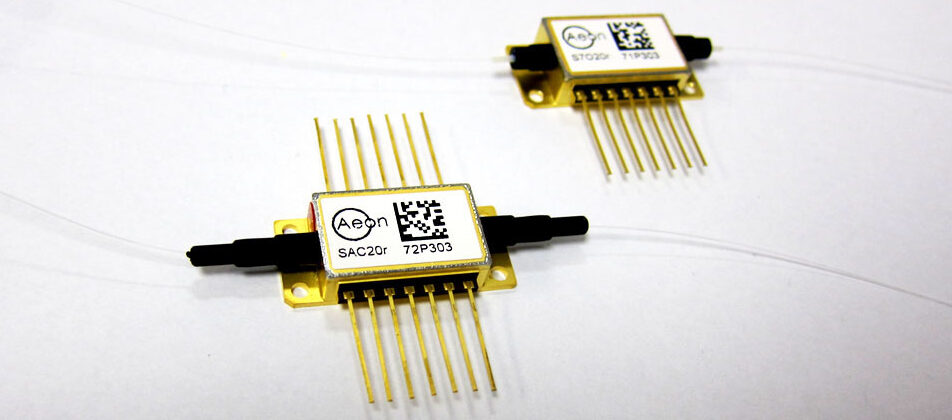 Semiconductor optical amplifiers (SOAs) are utilized in diverse, innovative applications and can be used as amplifiers, light sources, or switches. Used as an amplifier, all Aeon SOAs support burst-mode operation. Devices are available in all telecom wavelength bands from 1250 to 1650 nm, as well as in the short wavelength 1060-nm band. Available gains range from 5 to 30 dB, and we can optimize parameters to meet your application needs.